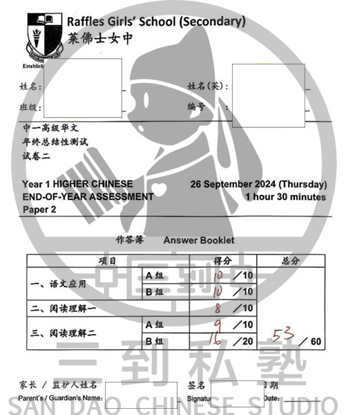 77/100 for EOY HCL Paper 2. 🙂 This student did not take HCL in Pri level but she still managed to do fairly well in Sec level HCL. Thus, for parents’ whose children are offered HCL in Sec level, the more important factors to consider includes their foundation in the language and their mentality/attitude towards it (whether they are willing to put in consistent effort and give it their best shot).